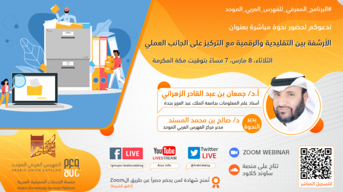ندوة حول الأرشيفية بين التقليدية والرقمية مارس 4, 2022 Ahmed El Mrini أنشطة, غير مصنف 0 Post Views: 1٬153 الرقميةندوة حول الأرشيفية