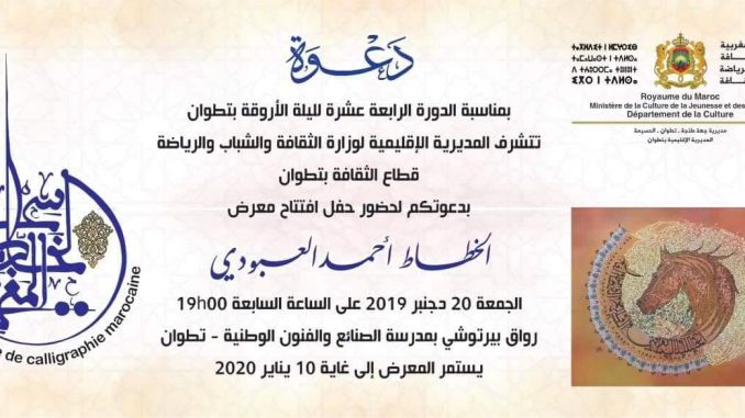معرض الخطاط أحمدالعبودي بتطوان ديسمبر 14, 2019 Ahmed El Mrini حديث الصورة 0 المجلة المغربية للدراسات الإنسانية Post Views: 1٬127