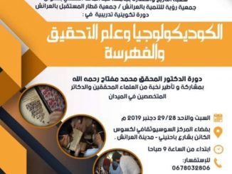 ينظم برنامج خطور دورة تكوينية وتدريبية في الكوديكولوجيا وعلم التحقيق والفهرسة، “دورة الدكتور المحقق محمد مفتاح رحم الله”.